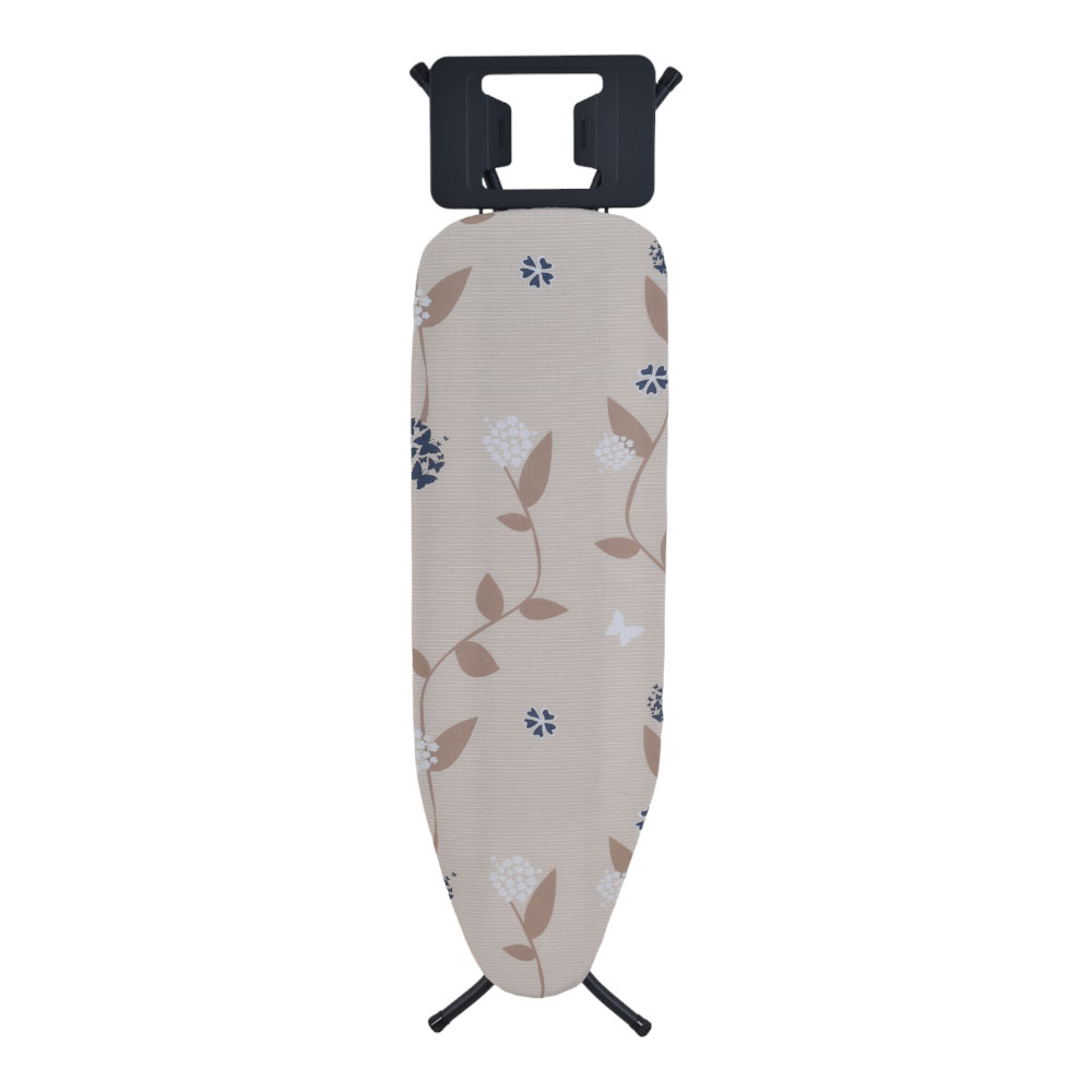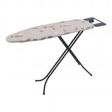 Σιδερώστρα με μεταλλικά μαύρα ματ πόδια,μεγάλη επιφάνεια σιδερώματος,ρύθμιση και ασφάλεια ύψους από 60 έως 88εκ.,θέση τοποθέτησης για το σίδερο και αντιολισθητικά ποδαράκια για μεγάλη ευστάθεια και σταθερότητα. Διαθέτει κάλυμμα 100% βαμβακερό.