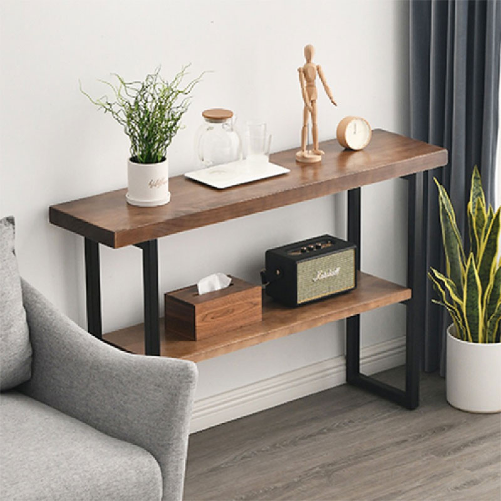 Κονσόλα φυσικό ξύλο 35mm καρυδί-μαύρο 79x29x85εκ