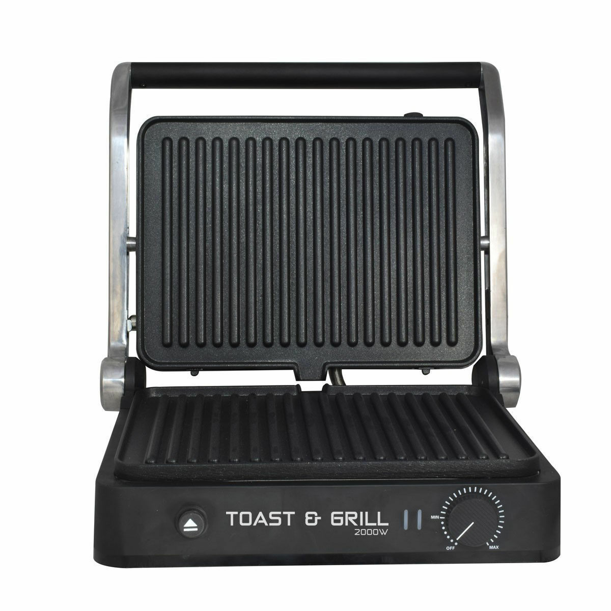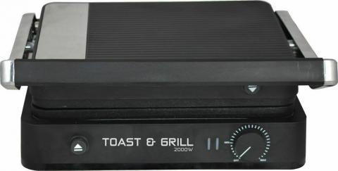 Η Τοστιέρα Toast&Grill 06-11857 αποτελεί εξαίσια επιλογή για εσάς που θέλετε μία ποιοτική και εργονομική τοστιέρα. Πρόκειται για μία τοστιέρα άριστης ποιότητας, η οποία διαθέτει πλάκες με αντικολλητική επίστρωση, ώστε να ψήσετε με ασφάλεια σάντουιτς, λαχανικά και κρεατικά. Φέρει θερμοστάτη για να ρυθμίζετε τη θερμοκρασία σύμφωνα με τις εκάστοτε ανάγκες σας. Διαθέτει δοχείο και οπή συλλογής υγρών και αντιθερμική λαβή. Το ύψος της επάνω πλάκας είναι ρυθμιζόμενο. Ισχύς: 2000W.Ποιότητα: