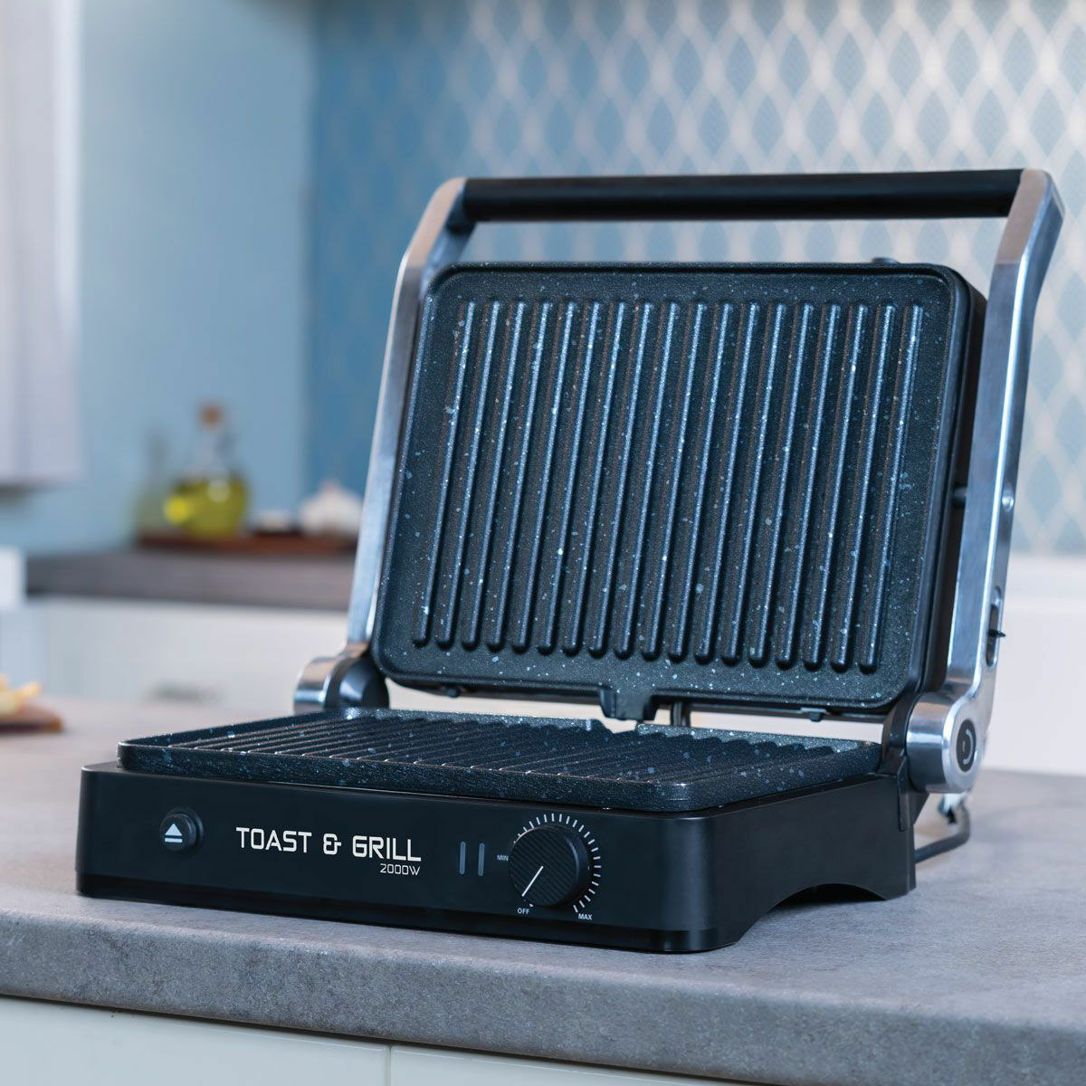 ESTIA ΣΑΝΤΟΥΙΤΣΙΕΡΑ ΓΚΡΙΛΙΕΡΑ TOAST & GRILL 4 ΘΕΣΕΩΝ 2000w ΜΕ ΑΠΟΣΠΩΜΕΝΕΣ ΠΛΑΚΕΣ & ΘΕΡΜΟΣΤΑΤΗ 06-11857 | Crystal