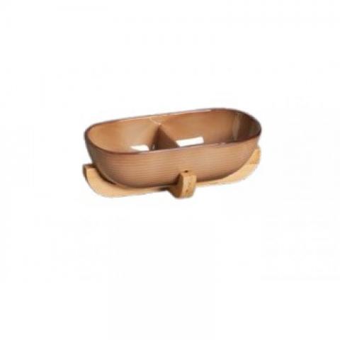 Ορντεβιέρα πορσελάνης 2 Θέσεων Mπεζ/Καφέ με ξυλινη βαση 26.5cm AM2258-C466