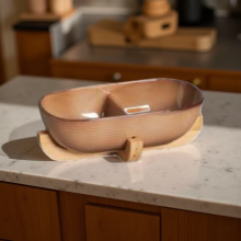 Ορντεβιέρα πορσελάνης 2 Θέσεων Mπεζ/Καφέ με ξυλινη βαση 26.5cm AM2258-C466 | Crystal