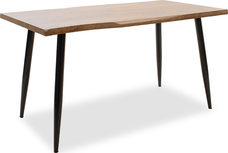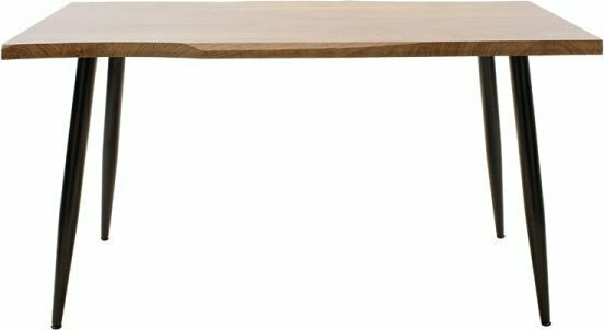 Το τραπέζι αυτο συνδυάζει το μέταλλο και το ξύλο (MDF) σ’ έναν πρωτοποριακό σχεδιασμό και μ’έναν εντυπωσιακό χρωματισμό, προσφέροντας λειτουργικότητα στην χρήση και ανθεκτικότητα στον χρόνο.Μία επιβλητική κατασκευή ιδανική για το σπίτι ως σύγχρονη τραπεζαρία, αλλά και για τον επαγγελματικό χώρο ως ένα μοντέρνο τραπέζι συμβουλίου. Τεχνικά χαρακτηριστικά:*Επιφάνεια κατασκευασμένη από MDF με επένδυση Paper Wood χρώματος καρυδί, πάχους 3,5 εκ. υψηλής ποιότητας με ανθεκτικότητα στον χρόνο.*Στήριξη σε τέσσερα εντυπωσιακά μεταλλικά πόδια ηλεκτροστατικής βαφής μαύρου χρώματος που αναδεικνύει καλαίσθητα το τελικό αποτέλεσμα. (Διάμετος: 50χιλ – πάχος 1,2χιλ)*Η επιφάνεια είναι απομίμηση φυσικού ξύλου με κυματιστή όψη.Διάσταση προϊόντος:Μήκος: 140 εκ.Πλάτος: 80 εκ.Ύψος: 75 εκ.Παρατηρήσεις:Το προϊόν παραδίδεται αμοντάριστο, σε εργοστασιακή συσκευασία και με αναλυτικό οδηγό συναρμολόγησηςΗ χρωματική απόχρωση του προϊόντος ενδέχεται να διαφέρει ελαφρώς σε σχέση με την φωτογραφική απεικόνισή του στην οθόνη σας