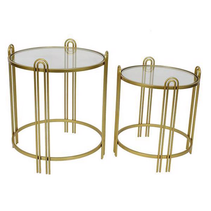 ESTHETI home Σετ των 2 Τραπεζάκια Βοηθητικά Μεταλλικά Χρυσά με Γυάλινες Επιφάνειες Φ48x56.5cm/Φ40.5x48cm 750-39512