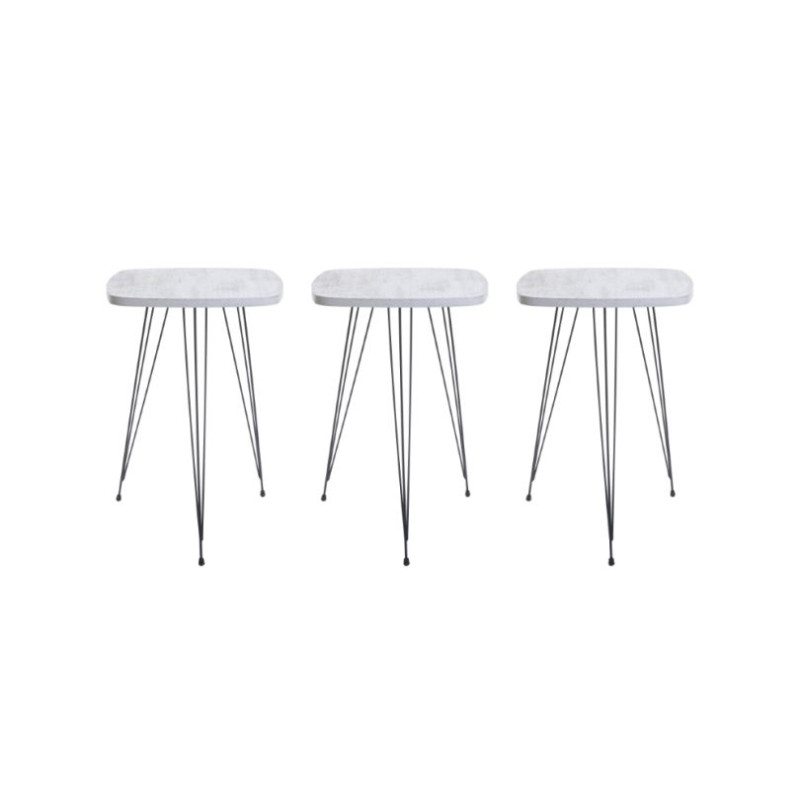 S/3 ΤΡΑΠΕΖΑΚΙ ΞΥΛΙΝΟ/ΜΕΤΑΛΛΙΚΟ ΓΚΡΙ/ΜΑΥΡΟ 38X38X56 Inart
