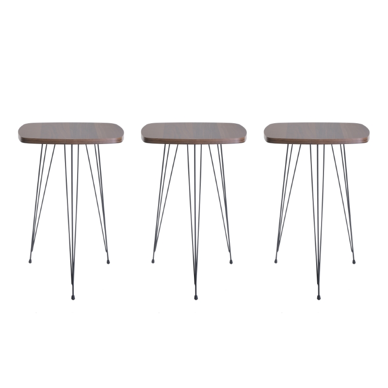 S/3 ΤΡΑΠΕΖΑΚΙ ΞΥΛΙΝΟ/ΜΕΤΑΛΛΙΚΟ ΚΑΦΕ/ΜΑΥΡΟ 37X37X56 INART