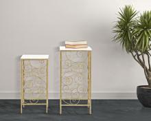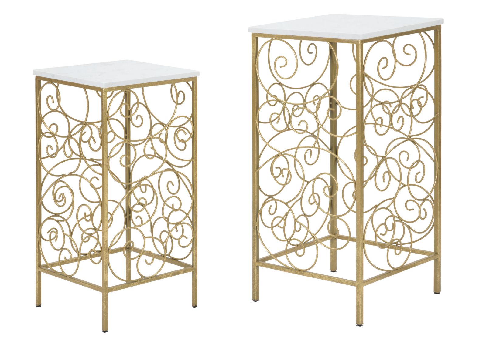 ΣΕΤ 2 ΤΕΜΑΧΙΩΝ ΤΡΑΠΕΖΙΑ ΣΑΛΟΝΙΟΥ ΧΡΥΣΟ ΑΝΤΙΚΕ ΛΕΥΚΟ ΜΑΡΜΑΡΟ 34X34X70-29X29X60ΕΚ | Crystal
