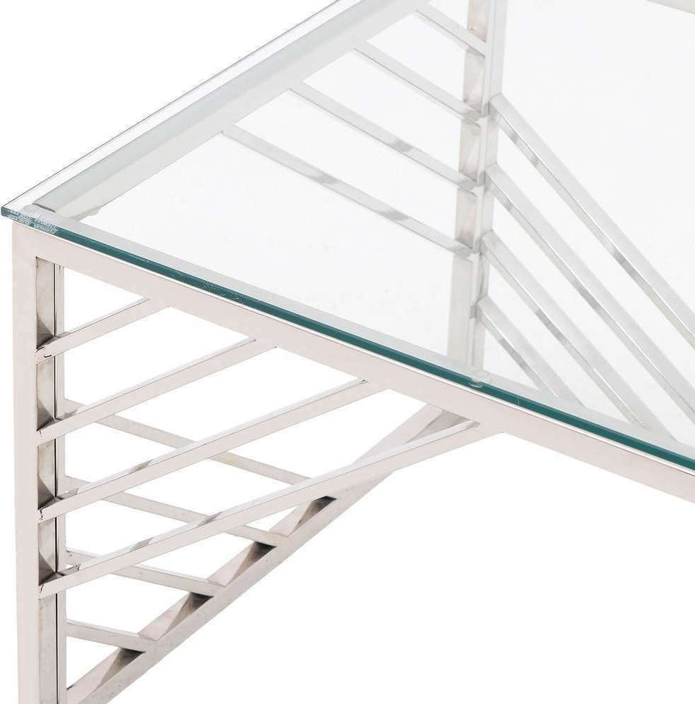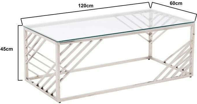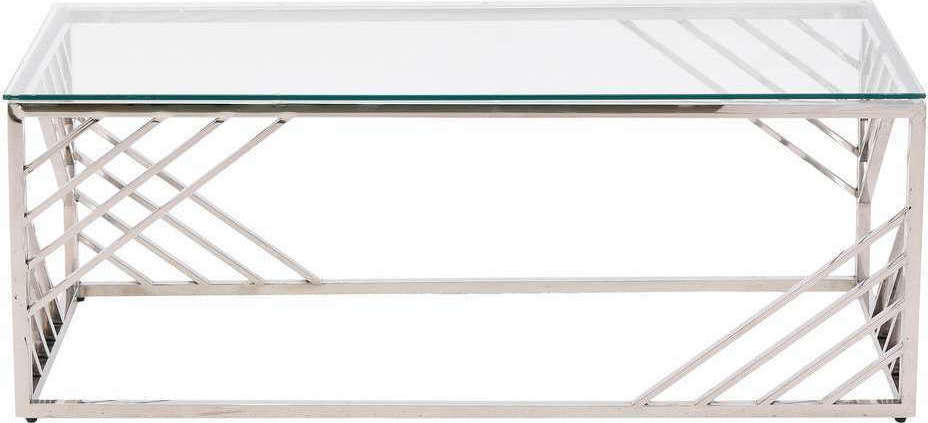 ΤΡΑΠΕΖΙ ΣΑΛΟΝΙΟΥ ΜΕΤΑΛΛΙΚΟ ΑΣΗΜΙ ΓΥΑΛΙΝΟ "CLEAR SILVER" 120Χ60Χ45ΕΚ | Crystal