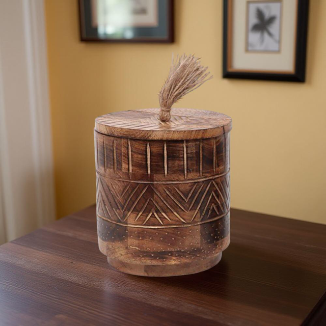ΔΟΧΕΙΟ ΑΠΟΘΗΚΕΥΣΗΣ ΜΕ ΚΑΠΑΚΙ ΞΥΛΟ MANGO ΦΥΣΙΚΟ ΣΚΟΥΡΟ D15xH15cm