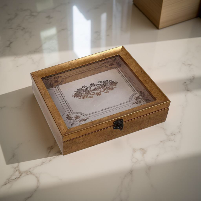 ΚΟΥΤΙ/ΣΤΕΦΑΝΟΘΗΚΗ ΠΟΛΥΡΕΖΙΝ ΜΕ ΓΥΑΛΙΝΟ ΚΑΠ. ΧΡΥΣΟ ΣΧΕΔΙΟ 30x26x6εκ - MAF222 ESPIEL