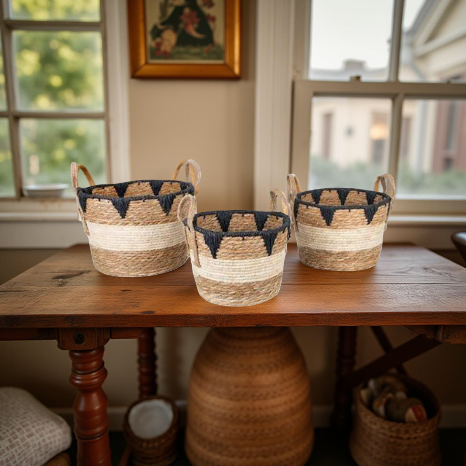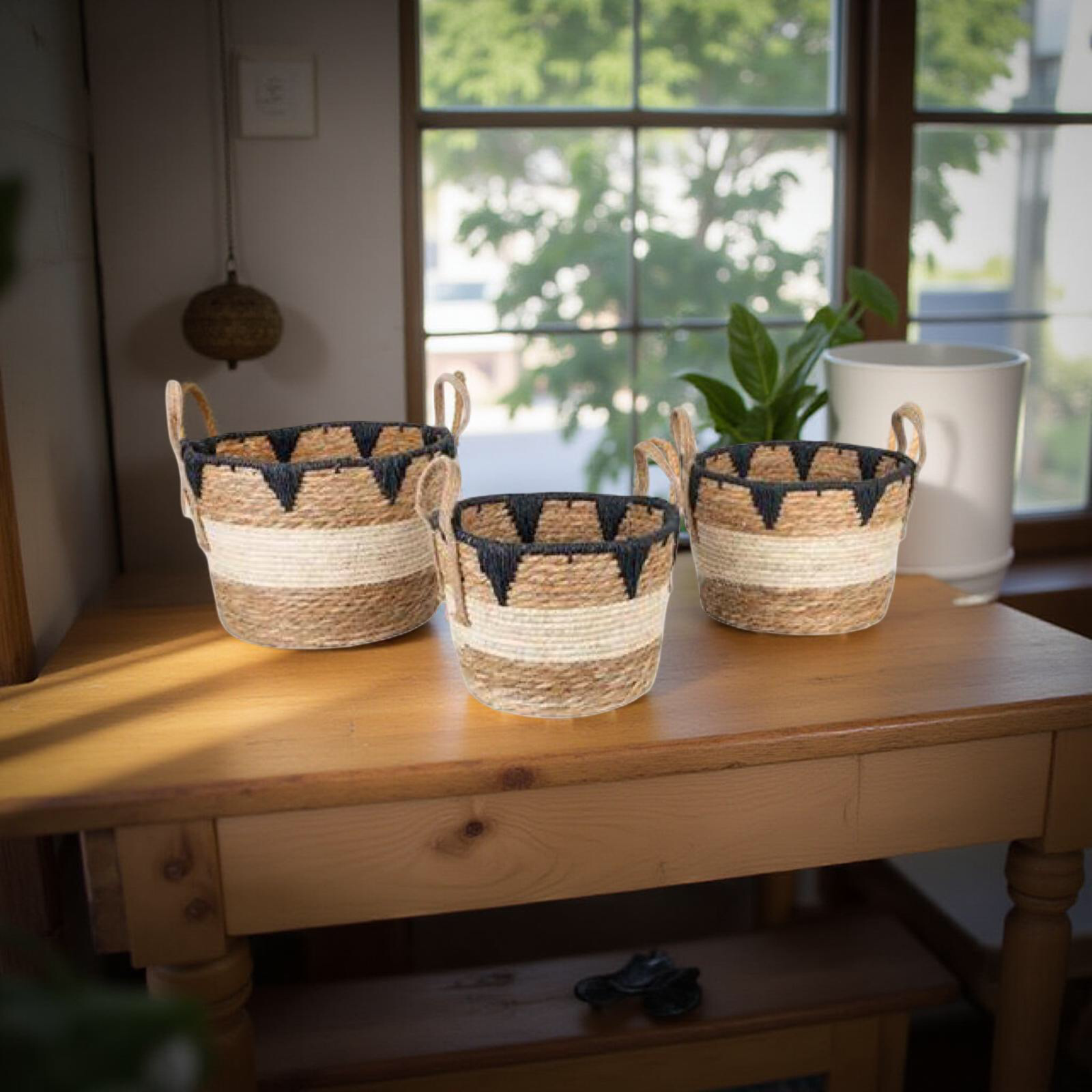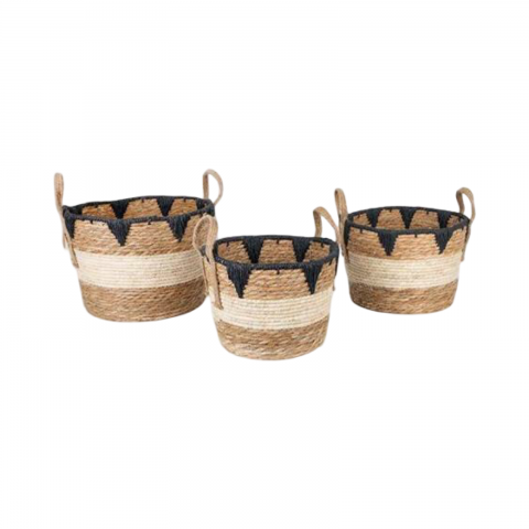ESTHETI home Σετ των 3 Καλάθι Ψάθινο Καφέ/Μαύρο 752-32011