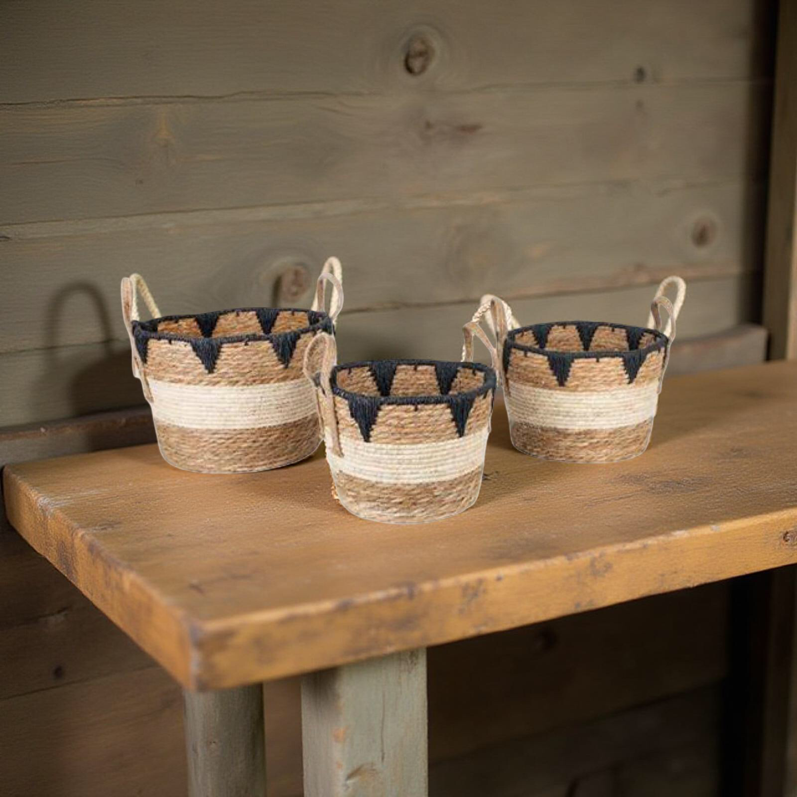 ESTHETI home Σετ των 3 Καλάθι Ψάθινο Καφέ/Μαύρο 752-32011 | Crystal