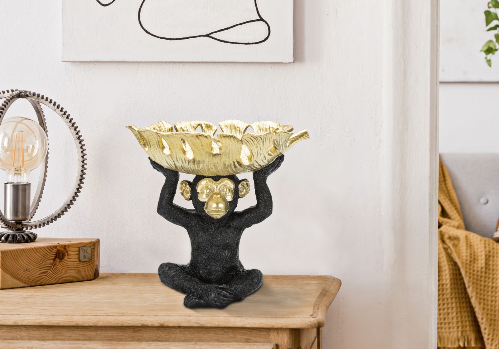 ΕΠΙΤΡΑΠΕΖΙΟ ΔΙΑΚΟΣΜΗΤΙΚΟ POLYRESIN ΠΙΘΗΚΑΚΙ ΜΕ ΦΥΛΛΟ ΜΑΥΡΟ ΧΡΥΣΟ 25,2X21X24 ΕΚ