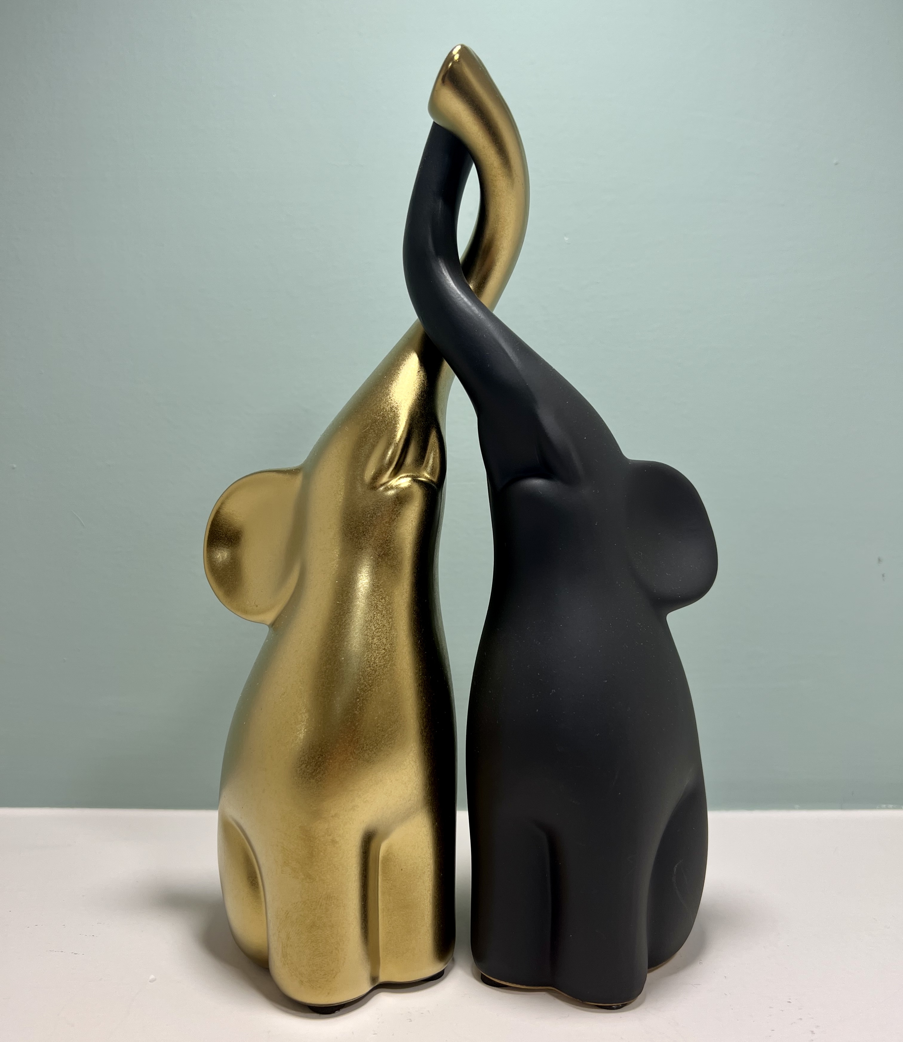 ΣΕΤ 2 ΤΕΜΑΧΙΩΝ ΕΛΕΦΑΝΤΑΚΙΑ ΠΟΡΣΕΛΑΝΗΣ ΧΡΥΣΟ ΜΑΤ ΜΑΥΡΟ ΜΑΤ 10.5X6.5X25.5cm