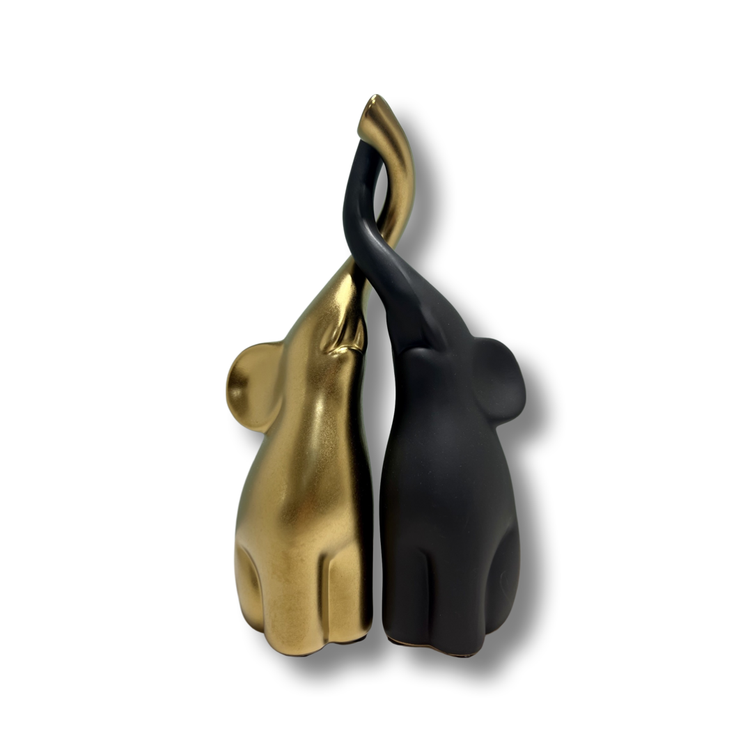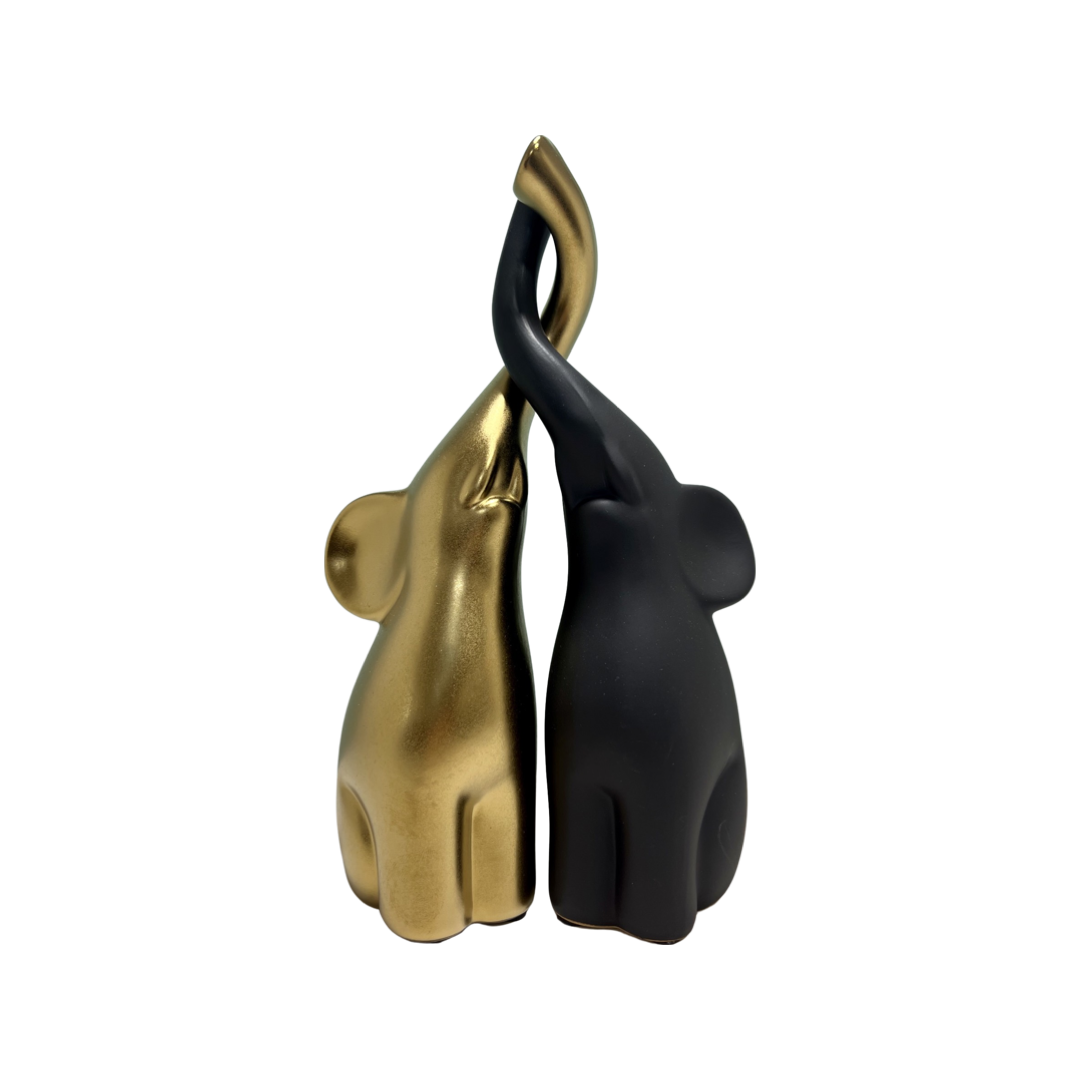 ΣΕΤ 2 ΤΕΜΑΧΙΩΝ ΕΛΕΦΑΝΤΑΚΙΑ ΠΟΡΣΕΛΑΝΗΣ ΧΡΥΣΟ ΜΑΤ ΜΑΥΡΟ ΜΑΤ 10.5X6.5X25.5cm | Crystal